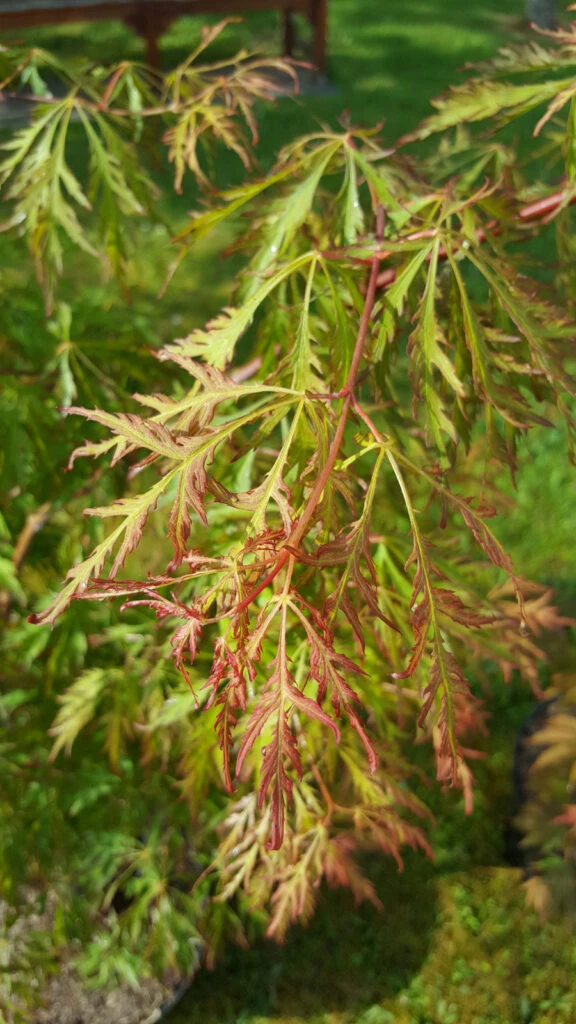 Description: A delicate looking, cold hardy tree with a gentle weeping habit. The finely divided, delicate appearing leaves unfurl blushed orange-red, quickly maturing to green, then turning a kaleidoscope of orange yellow and red in autumn.