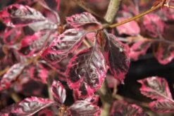 Description: Also known as Roseomarginata, is a rounded to spreading, deciduous tree bearing elliptic to ovate, wavy-margined variegated leaves. Foliage typically emerges in spring as purple with pink margins, changes to dark bronze-green with pale pink (later white) margins in summer and finally turns bronze-gold in fall. Inconspicuous yellow-green flowers in spring are followed by spiny, capsule like fruit in autumn.