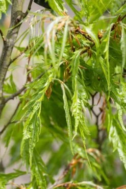 Description: Also known as Fern Leaf Beech, a medium sized tree, pyramidal when young and developing a broad spreading crown with maturity, often becoming as wide as it is tall. This is a cut leaved cultivar that features narrow, lanceolate, feathery, fine textured, fern like, leaves that are deeply dissected into slender lobes. Throughout the summer, it is a dark glossy green turning a sumptuous golden yellow in autumn. The smooth silky grey bark adds winter interest. In mid-late spring small inconspicuous yellow green flowers are on display, followed by bristly fruits which ripen in the autumn.