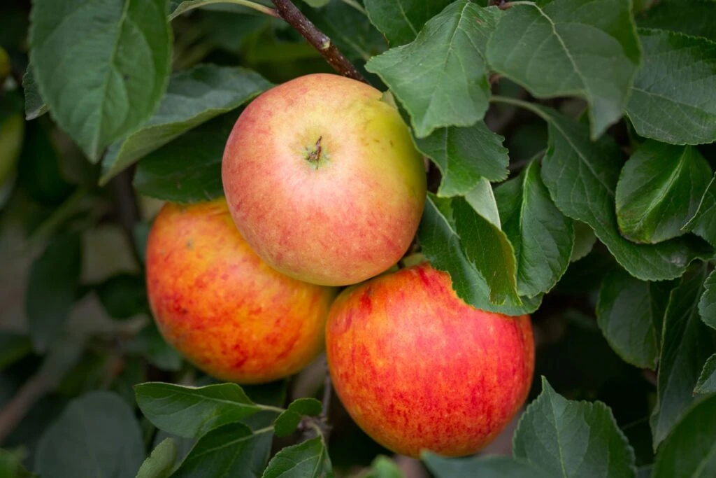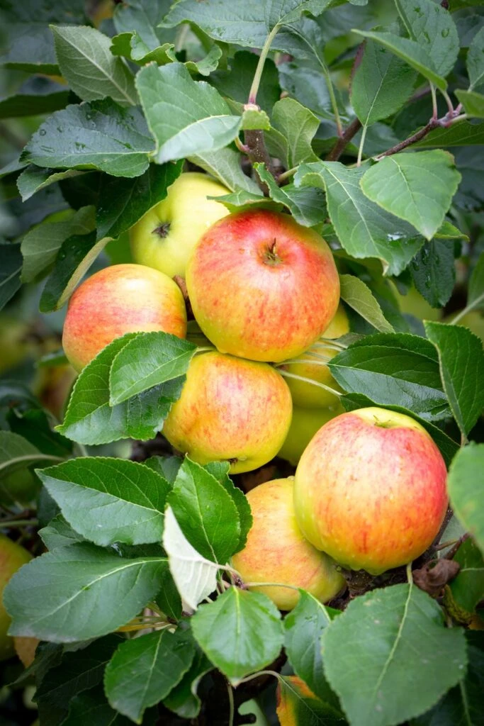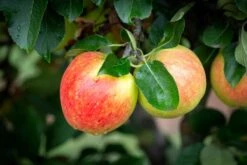 Description: James Grieve is a well known, well flavoured early dessert apple. Red flush stripes over pale green with a creamy white, juicy, rather soft flesh. Excellent refreshing flavour and a reliable cropper. A deservedly popular apple which is grown commercially in the UK, usually as a pollinator for Cox. Can be used for eating, juicing and cooking, keeps its shape when cooked and is known to be one of the best apples to accompany a cheese board!