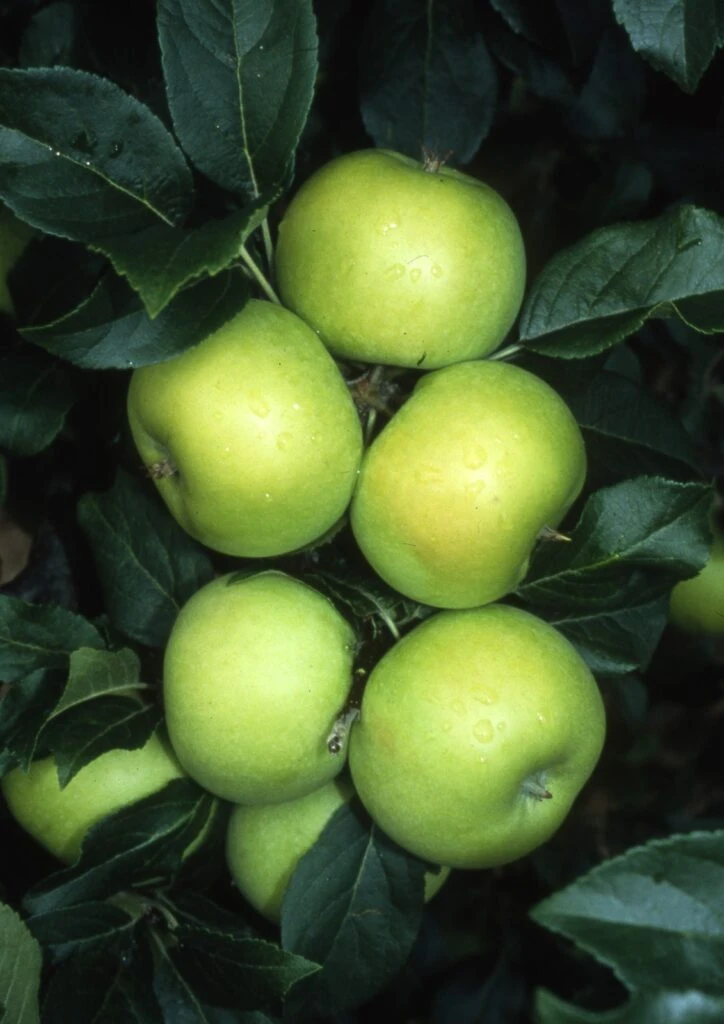 Description: Limelight is a mid-season eating apple, an improved Greensleeves type, abundant in cropping. Very suited to its name as the yellow-green fruits are almost luminous. The apple has a clean, smooth finish and seems to glow when ripe with the occasional attractive pink blush. Flesh is crisp, refreshing and rich in flavour. Very disease resistant and a very heavy cropper in suitable growing conditions.