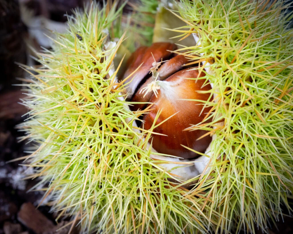 Chestnut Growing Tips: Happier planted on lighter soils, acid to neutral is best, avoid chalk if possible. They dislike waterlogged soils, which can encourage ‘ink disease’ symtoms. Make sure you harvest the nuts daily to avoid the attention of hungry vermin!