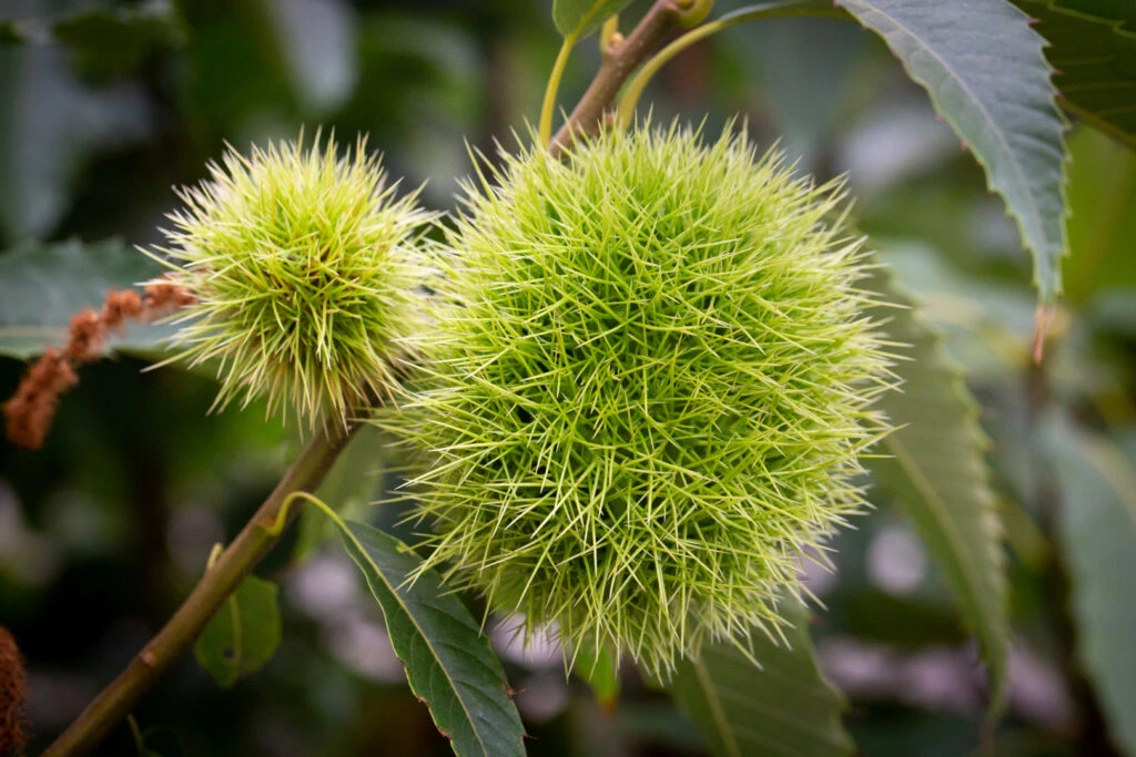 Chestnut Growing Tips: Happier planted on lighter soils, acid to neutral is best, avoid chalk if possible. They dislike waterlogged soils, which can encourage ‘ink disease’ symtoms. Make sure you harvest the nuts daily to avoid the attention of hungry vermin!