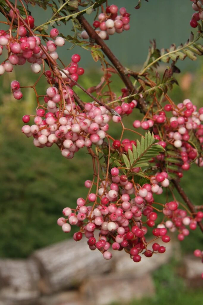 Description: An exquisite little tree similar to Sorbus vilmorinii but less vigorous. The leaves are pinnate and almost fern like, green at first, turning to orange and red in the autumn. White blooms in late spring are followed by deep rose-red berries.